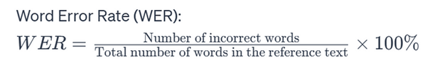 It is calculated by dividing the total number of incorrect characters by the total number of characters in the reference text. CER is expressed as a percentage.